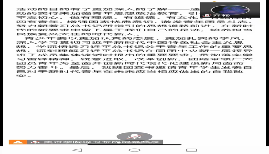 2019级美术学绘画一班团支部在线上组织团支部成员共同学习。