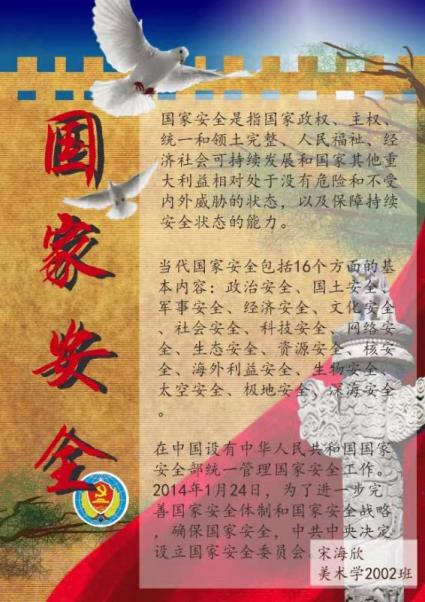 2020级视传一班以设计海报宣传页宣传国家安全教育。