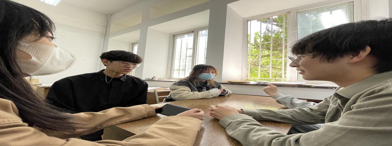 2021级美术学四班由员工代表发言,其余同学各自组合成讨论小组开展“网络安全”为主题的团日活动。