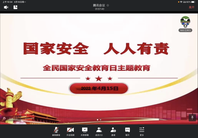 2019级美术学二班在腾讯会议展开一次以“强化安全意识,提升防范素养”为内容的主题团日活动。