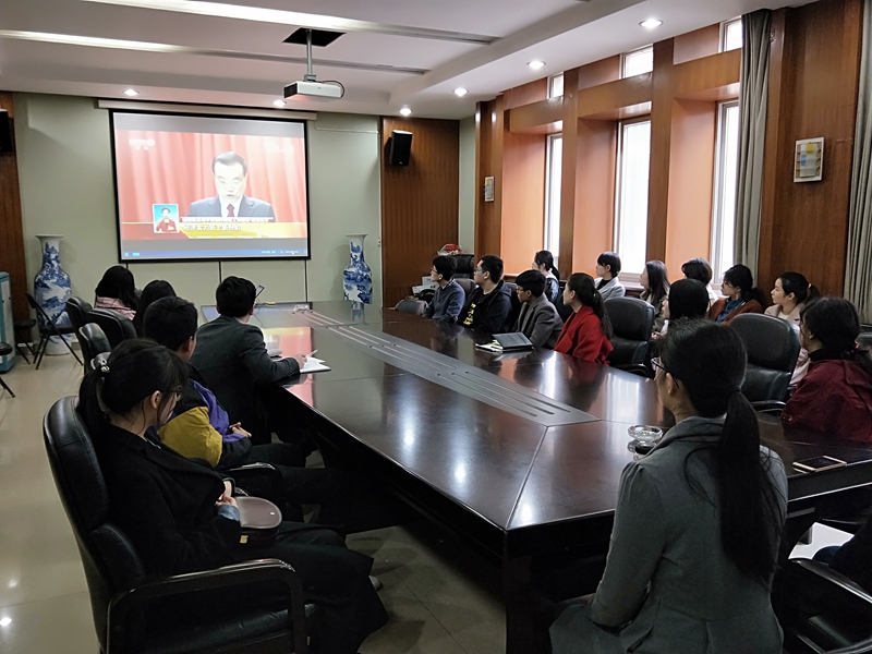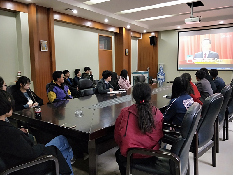 国事家事天下事,事事关心。为迎接2018年“两会”的顺利召开,引导青年学子关注时政,3月5日上午,公司团委组织员工代表在学院会议室集中观看两会开幕式直播,学院团委书记孙雅媛和全体辅导员与同学们一同观看。