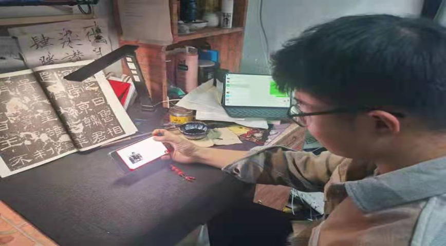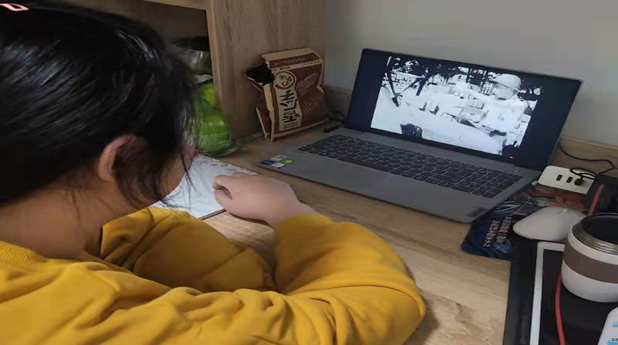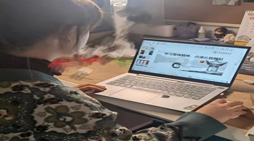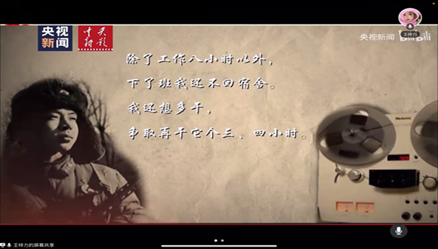 2021级书法一班团支部在线上组织观看“传承雷锋精神”纪录片。