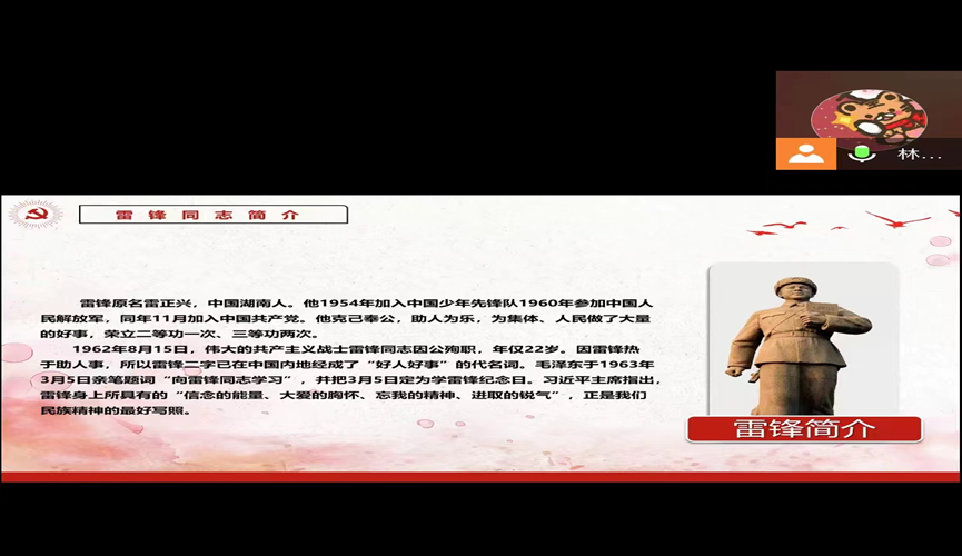 2021级美术学二班团支部在线上举办了一次主题为“传承雷锋精神”的团日活动。