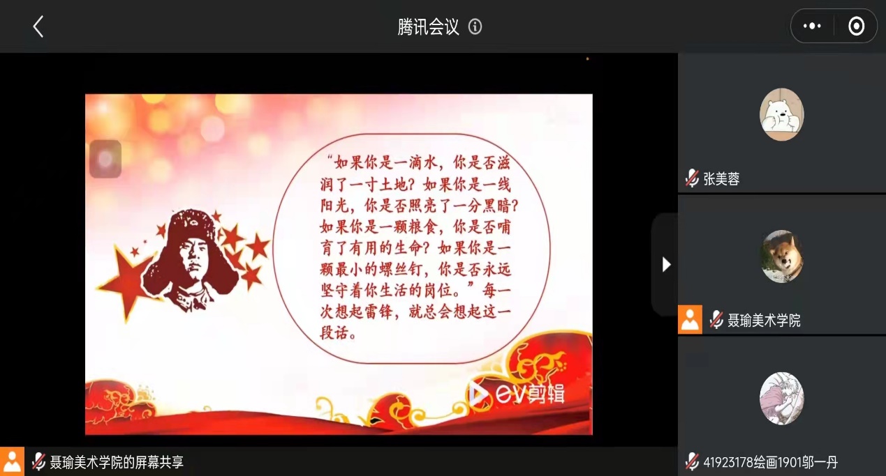 2020级绘画一班团支部组织同学在线上学习雷锋精神。